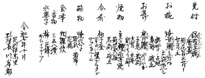 10月中旬から2月末までのメニューです。